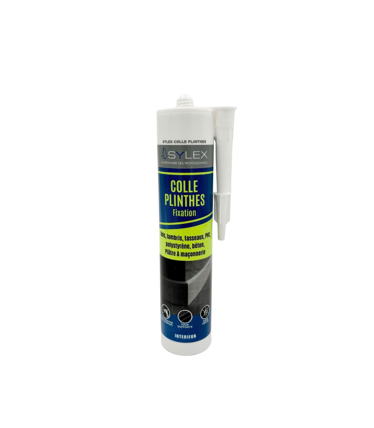 Colle de fixation spéciale plinthes formulée à base acrylate. Sans solvants ni odeurs, cette colle permet de fixer les plinthes sans avoir recours à des clous ou des vis. La prise est immédiate et colle de manière très forte et durable. Cette colle est également adaptée pour le collage de crédences de cuisine, de moulures ou de tout éléments dont l'une des deux matières est poreuse.