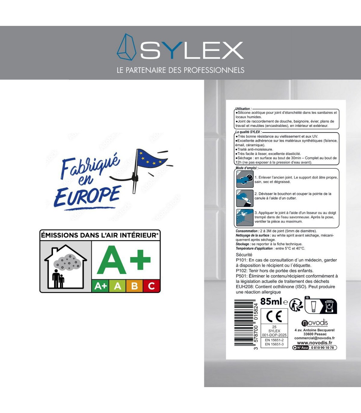 Oui, il est spécialement formulé pour des joints de sanitaires, lavabos et tout élément en zones humides.